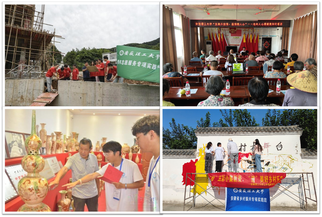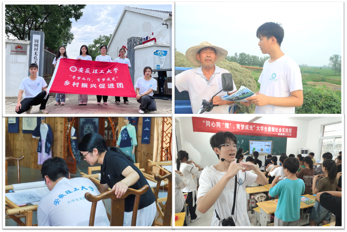 聚焦作用发挥,提升育人实效。组建9支乡村振兴实践团,深入淮南市、六安市、黄山市等地开展实践活动,建立安徽理工大学大学生社会实践基地3个,活动受到中国共青团杂志、学习强国平台、安青网等主流媒体报道10余次,团队合作撰写成果报告6篇,“葵花小课堂”“归雁计划”等项目服务当地群众超千人次,切实让学生在社会实践中受教育、长才干、作贡献。