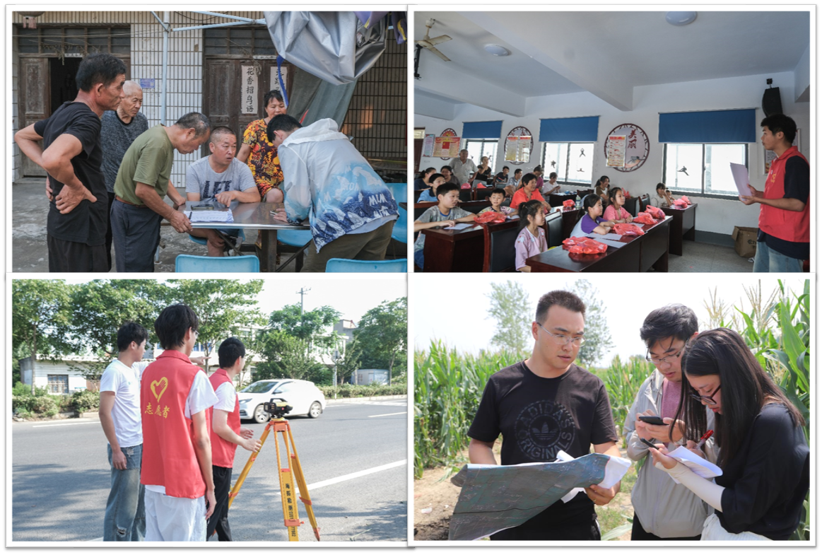 突出精准测绘,助推乡村振兴。依托测绘工程、遥感科学与技术、导航工程等学科专业优势,空间信息与测绘工程学院组建“专业教师+辅导员”的指导教师队伍,提升服务乡村振兴的科技含量。在了解到当地“鱼塘养殖”扶贫项目遇到的一些难题后,团队利用卫星定位技术和遥感测绘技术对“鱼塘养殖”项目的地形图及土地权属界址点进行了详细勘察测定,为当地农业产业扶贫提供基础测绘服务保障。实践团还为当地水系畅通工程的相关内容进行外业测量工作,形成的数据和图件,为当地水系畅通工程的开展提供基础性参考。