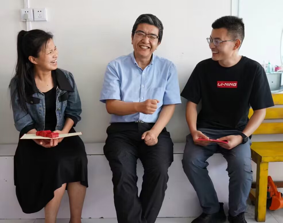 董雨向刘书祥、雷阿妹转交党委书记郭永存、校长袁亮院士撰写的新婚贺卡