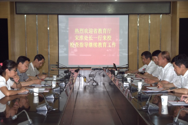 6月30日上午,省教育厅高教处、发展规划处检查评估组宋淮调研员一行3人来校检查评估我校继续教育工作,会议在图书馆一楼北会议室举行,副校长叶醒狮出席会议。