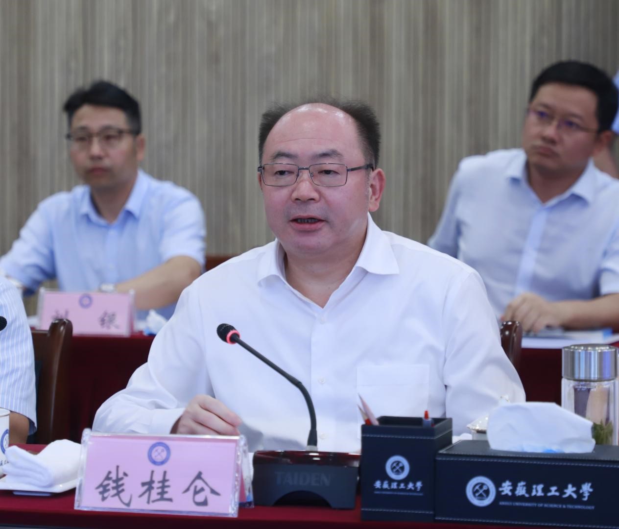 袁亮介绍学校发展情况。他指出,学校坚持“双一流”创建目标不动摇,一流学科建设取得新突破;组建大团队、开展大科研、承担大项目、推进大转化,推深做实“四个融入”发展战略,践行“三有、三进、三到”办学理念,支撑学校高质量发展。坚持面向世界科技前沿、面向经济主战场、面向国家重大需求、面向人民生命健康,学校与四大矿业集团合作发展,推进产学研深度融合,推动创新链、产业链、教育链、人才链共进互促,为高水平科技自立自强作出积极贡献。科技创新成效显著,支撑建成一批现代化高瓦斯矿井,解放了淮南矿区深部优质煤炭资源,推动了行业矿业安全技术整体进步,推进煤炭安全生产形势持续好转,为国家能源安全、主体能源高质量发展作出了重大贡献。学校将进一步深化校地校企合作,创新产教融合模式,重点在煤炭智能安全绿色开采、煤炭清洁高效利用、矿山智能制造、职业安全健康、矿山环境保护及生态修复等领域开展技术研究与攻关,聚焦能源安全高质量发展,围绕煤炭行业共性技术难题,通过资源共享、优势互补,强化协同创新,抢占行业领域科技创新制高点,谱写煤炭领域绿色低碳转型和高质量发展新篇章!