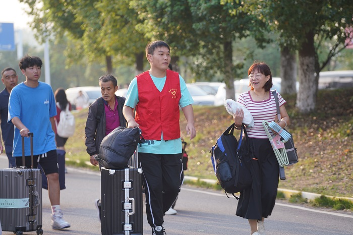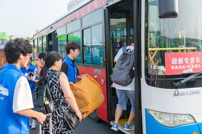 “我们是迎新‘排头兵’,站好第一班岗,为他们服务是我们送给新同学的第一件礼物。”来自大学生爱心社的志愿者张宇航说道。今年,学校迎新工作面临着校区多、人数多的挑战,校团委组织1500余名志愿者驻守在新同学的来校路上。车站、机场均设有新生接站点,60辆大巴车轮流摆渡;每辆大巴车上安排礼仪队同学全程跟车介绍学校;校园内设有5辆摆渡车,帮助自驾来校新生搬运行李;各学院设有行李搬运、报到服务等专项工作志愿者,一对一引导新生,带领他们前去学院报到点报到并送进宿舍。热情、亲切、走心的迎新志愿者们,通过精细化地贴心服务,让刚刚踏进安理校园的同学们立即找到了“家”的感觉。