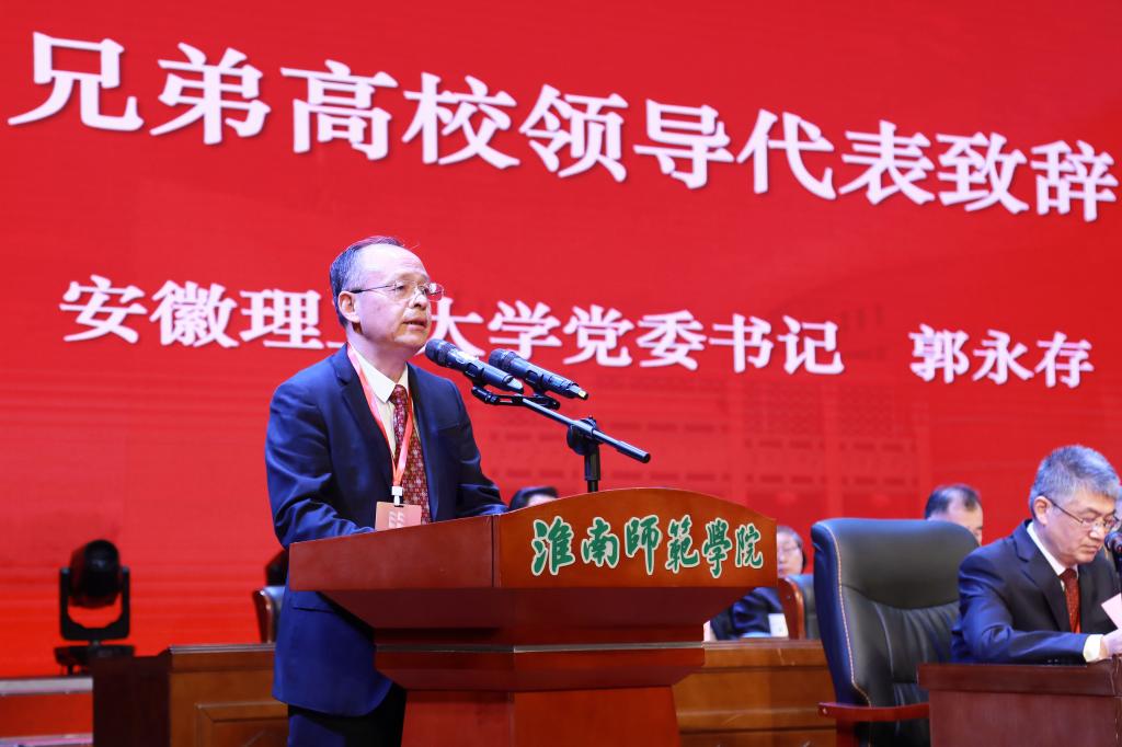 9月28日上午,校党委书记郭永存应邀出席淮南师范学院庆祝建校65周年大会暨高质量发展论坛,并代表兄弟高校致辞。淮南市委书记任泽锋,市委副书记、市长张志强,省委教育工委委员、省教育厅副厅长解平等出席会议。