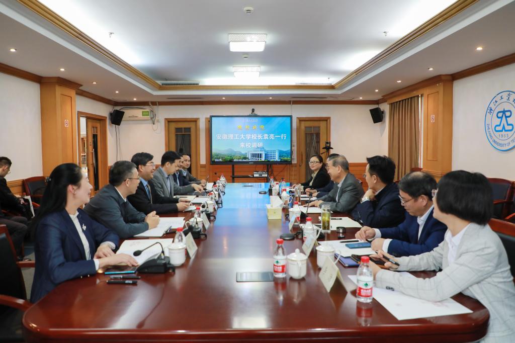高翔对袁亮一行的到来表示热烈欢迎,对安徽理工大学取得的办学成就表示高度赞赏。他表示,浙江工业大学以“立足浙江、服务区域,走向全国、对接国际”为办学宗旨,近年来在学科专业建设、科研管理创新、薪酬体系与绩效考核、高层次人才引育等方面实施了系列改革措施,压实二级学院主体责任,完善激励评价机制,充分调动广大教职员工的积极性和创造性。两校友谊渊远流长、合作基础稳固,同为省属理工科重点高校,同为长三角高等工程教育联盟高校,希望同安徽理工大学加强交流互鉴,共建研究院,助力双方高质量发展。