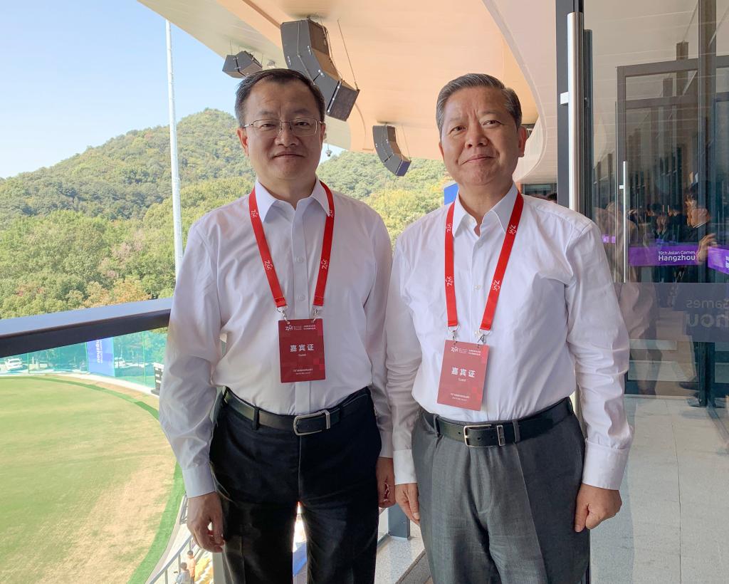 袁亮同浙江大学校长杜江峰交流并合影(摄影:施培松、张庆贺、会务组)