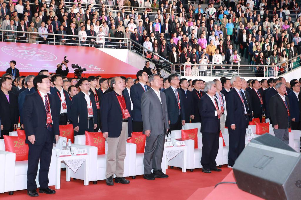 袁亮与共同出席会议的浙江大学校长、中国科学院院士杜江峰,澳门大学校长宋永华,与中国科学院、中国工程院院士孙优贤、高从堦、沈寅初、谭建荣、涂永强、刘丛强、杨小牛、陈芬儿、蔡荣根、邓宗全、管晓宏、郑裕国、郑纬民、林海青、叶志镇、孙立成、郑津洋、崔占峰、陈掌星等亲切交流,向他们介绍我校近年来发展情况,并诚挚邀请院士专家来校指导交流。