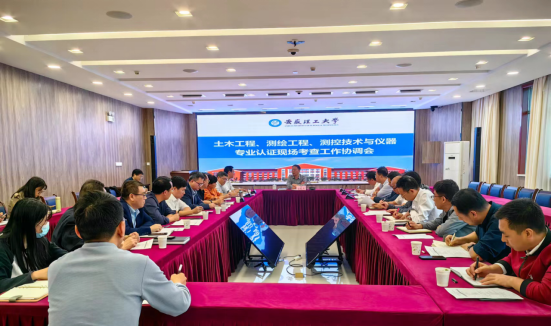 10月24日下午,学校在行政楼西配楼二楼会议室召开土木工程、测绘工程、测控技术与仪器专业认证专家组现场考查工作协调会。校党委常委、副校长宫能平主持会议并讲话。