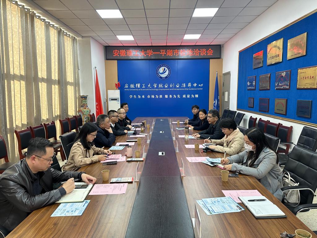 11月21日下午,平湖市政协副主席沈幼锋一行6人携当地8家优质企业来校洽谈校地合作并同步开展校园招聘。校党委常委、副校长董雨出席洽谈会。