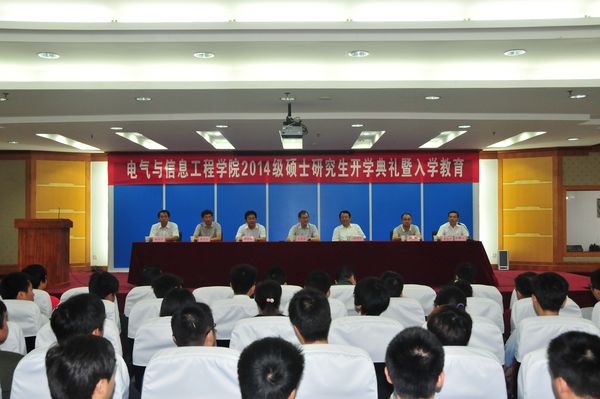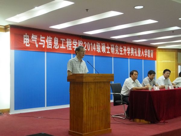学院院长黄友锐介绍了学院的办学历史、学科专业特色、师资、科研等基本情况。学院副院长周孟然代表研究生导师对广大新生提出希望,希望大家要修身立德、恪守学术道德,刻苦学习,努力成为一名优秀研究生。2014级控制科学与工程专业硕士研究生宋得名、2012级电气工程专业硕士研究生王常琪分别作为新老研究生代表发言。