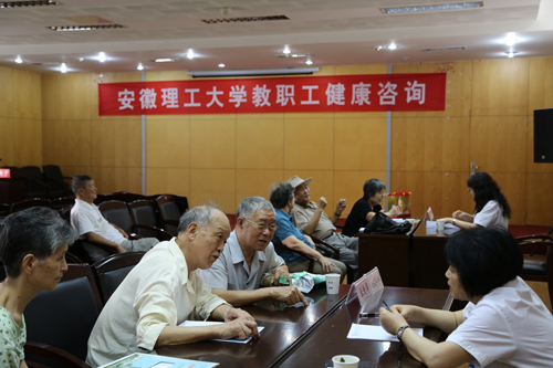为庆祝第30个教师节,方便广大教职工针对今年体检结果及日常医疗保健知识进行咨询,增强广大教职工医疗卫生知识和保健意识,9月10日下午,校人事处、校工会邀请了淮南市第一人民医院的医生、专家来校,在图书馆一楼北侧、西侧会议室举办了医疗健康咨询活动,为教职工答疑解惑。