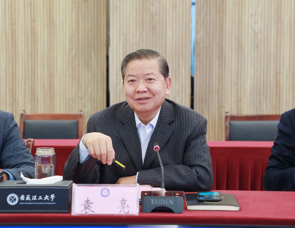 袁亮对张力一行来校交流表示热烈欢迎,简要介绍了学校78年来在党的坚强领导下,扎根江淮大地,深耕矿山煤海,培育行业英才,服务国家能源建设和经济社会发展情况。他指出,近年来,学校在习近平新时代中国特色社会主义思想科学指引下,赓续重点大学基因,发扬自信自强传统,锚定创建“世界一流学科和国内一流特色高水平大学”目标,加强传统能源与新能源融合发展研究,着力对接服务碳中和战略,不断强化学科交叉融合,推进专业优化调整,成立能源安全与清洁利用等三大学部,组建碳中和科学与工程学院,申报新能源、储能等新兴专业,着力开展急需人才培养;不断强化平台建设,推进有组织科研,与淮河能源集团携手成功重组深部煤炭开采与环境保护全国重点实验室,构建了全重、国重、国家工程中心、协同创新中心等体系贯通的高能级平台体系,加大关键技术攻关和成果转化力度;不断强化科教产融合、理工医协同,推进开放办学,与中国能源建设集团等能源领军企业及省内四大矿业集团开展深度合作,积极融入合肥综合性国家科学中心,牵头能源研究院煤炭清洁高效利用方向建设,在煤炭清洁高效利用、全浓度瓦斯利用、5G智慧矿山建设等领域取得一批原创性成果。他表示,学校愿与中国电力工程顾问集团深度合作、优势互补,携手服务绿色低碳、环境友好、多能融合的能源体系建设,有力支撑国家能源安全和碳中和战略。