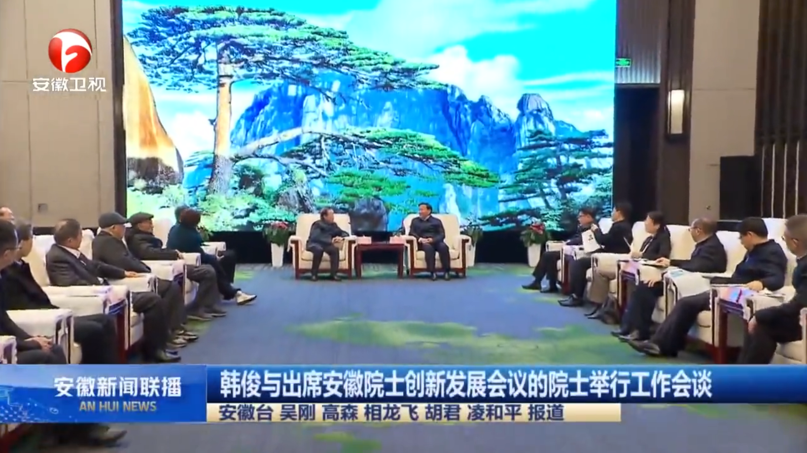 12月15日下午,省委书记韩俊在合肥与出席第六届安徽院士创新发展会议的院士举行工作会谈。