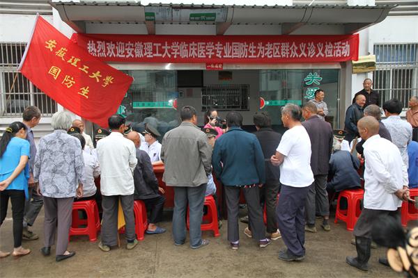 8月26日-28日,在驻校选培办副主任金绍启、干事万传波的带领下,安徽理工大学10名2010级临床医学专业国防生组成 “爱心小分队”,来到金寨县铁冲乡,开展“送理论、送科技、送服务到老区、到山区、到社区”的社会实践活动。