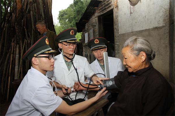 在为期3天的实践活动中,“爱心小分队”为铁冲乡铁冲村党员带来了30余册《习近平总书记系列重要讲话读本》,开展党的创新理论宣传。他们发挥自身特长,为铁冲乡群众义诊义检、健康咨询及卫生知识宣讲,许多村民冒雨赶来参检。一位94岁高龄的老人,听说国防生来送医送药,坚持让其女儿扶他过来检查身体,体检完后,小分队主动派人把老人送回家中。他们还抽组两个巡诊小组,深入到各个村组,帮助行动不便的群众检查身体,发放常用药品。在帮五保户简道英老人检查完身体后,小分队成员、国防生黄海松看到老人家中贫寒,主动掏出200元钱塞到她手中。他们还来到铁冲乡希望小学,为留守儿童捐赠学习用品、辅导作业。在铁冲乡敬老院,小分队为老人们带来了毛毯,并帮助一一检查身体,表演文艺节目,以实际行动为老区群众献爱心。