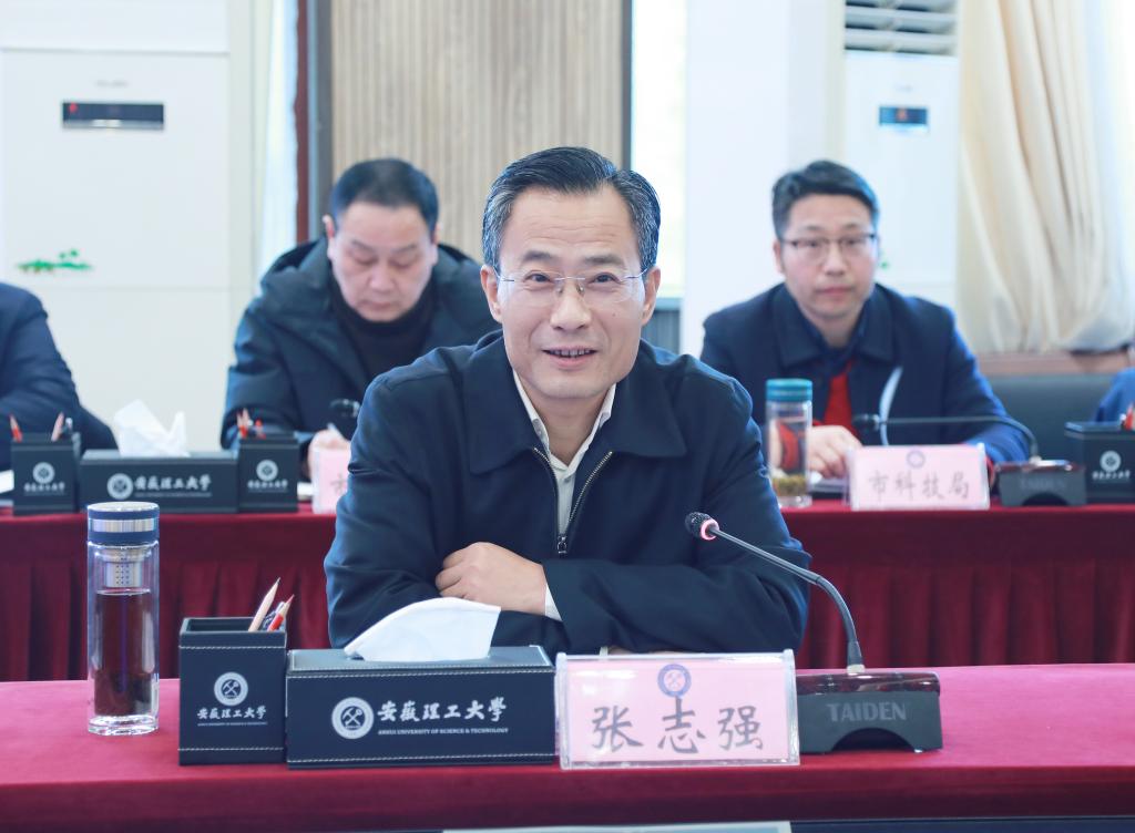 张志强向安徽理工大学长期以来对淮南建设发展的支持表示感谢。他指出,过去一年,面对多重困难挑战和艰巨繁重任务,在市委的坚强领导下,在安徽理工大学的全力支持下,全市上下聚焦重点攻坚克难,深入实施五大攻坚行动,推动现代化美好淮南建设迈出坚实步伐。新的一年,要紧扣“七个强市”奋斗目标,加强与安徽理工大学的深度合作,共同推进全重、国重、大学科技园等高能级创新平台建设,吸引更多高素质人才留淮就业创业,着力打造“安理智谷”,拓展新领域新赛道,塑造新动能新优势,全力巩固经济社会持续向上向好发展态势。他表示,大家围绕贯彻落实中央决策部署和省委、市委工作要求,从淮南实际出发提出了很多专业意见,站位高、视野宽、落点实,市政府将全面梳理、充分吸纳、认真提炼,进一步修改完善报告,不断改进政府工作。他期待学校一如既往地支持淮南市政府工作,共同推动各项工作展现新气象、开创新局面。