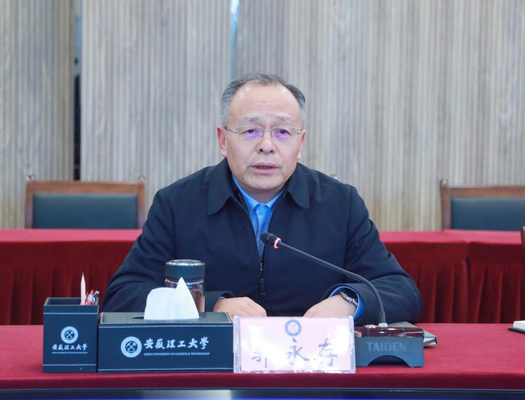 郭永存指出,市《政府工作报告》通篇贯彻了习近平新时代中国特色社会主义思想,全面总结了贯彻党的二十大精神开局之年,淮南展现的新作为、取得的新成就、形成的新气象,对2024年重点工作的研究布置信心足、思路明、措施实,是一篇站位高、分量足、亮点多的报告。他强调,党的二十大将教育、科技、人才统筹部署、一体推进,作为科技第一生产力、人才第一资源和创新第一动力的重要结合点,安徽理工大学对支撑淮南市高质量发展具有不可替代的重要作用。近年来,市校融合发展取得了诸多标志性成果,市委市政府将最好的三甲医院划转至学校、将山南综合医院整体交付学校运营,双方共建高峰学科、共建大学科技园、共建人才引育工作站,安徽理工大学毕业生留淮就业创业逐年增加,学校大量创新资源支撑服务淮南市创新发展,双方从未像今天这样关系密切、共生共荣。他表示,安徽理工大学“饮淮河水,吃淮南粮”,将聚焦国家战略所向、淮南所需、学校所能,奋力为淮南创新发展提供智力、人才和创新支撑。