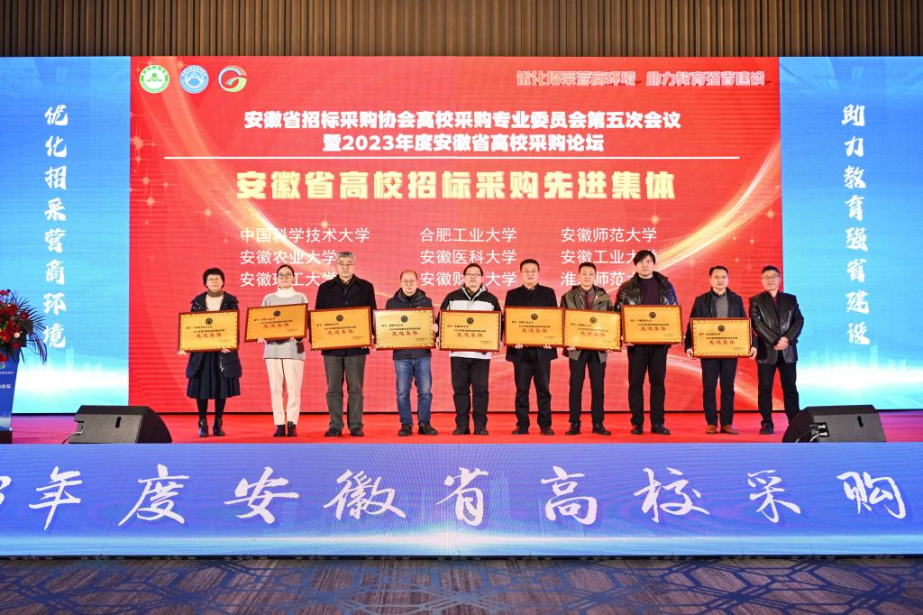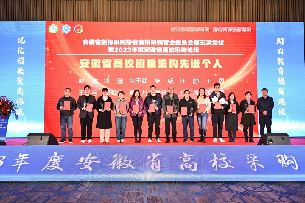 1月11日,安徽省招标采购协会高校采购专业委员会第五次会议暨2023年度安徽省高校采购论坛在合肥召开。我校荣获“2023年度安徽省高校招标采购先进集体”,采购中心吴青璇同志荣获“2023年度安徽省高校招标采购先进个人”。