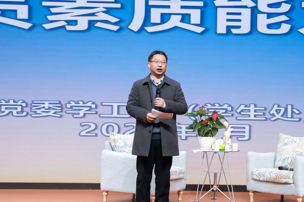 为深入学习贯彻习近平新时代中国特色社会主义思想和党的二十大精神,落实立德树人根本任务,以赛代训、以赛代练,推动辅导员队伍专业化、职业化建设,提升大学生思想政治教育工作质效,1月20日,学校在舜耕会堂举办辅导员素质能力大赛校级决赛,校党委常委、副校长董雨亲临现场指导。