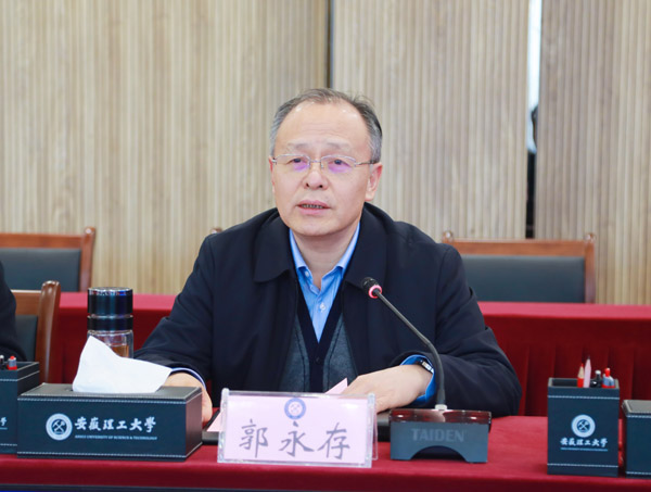 郭永存对孙学军一行表示欢迎,并介绍了学校近年来在人才培养、学科建设、人才引育、科技创新等方面取得的重要成果。他表示,中煤矿建集团积极融入国家战略需求,自觉服务经济社会高质量发展,是安徽矿山建设行业的领军企业。学校学科专业布局与企业主营业务契合度高、对接面广,双方既有共同的“初心”和长期合作的良好基础,又有着高度一致的发展理念,合作前景广阔。面对新形势新任务,希望双方充分发挥各自优势,在新的起点上持续开展深层次、多领域务实合作,强化在人才培养、科研攻关、技术研发、成果转化、项目申报等方面协同联动,落细落实各项合作,携手打造产学研深度融合的合作典范。