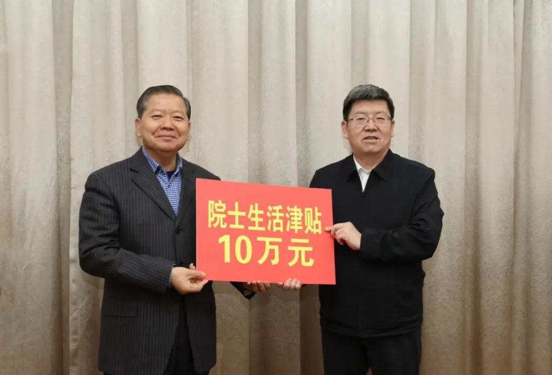 任泽锋代表市委市政府向袁亮院士赠送鲜花和院士生活补贴
