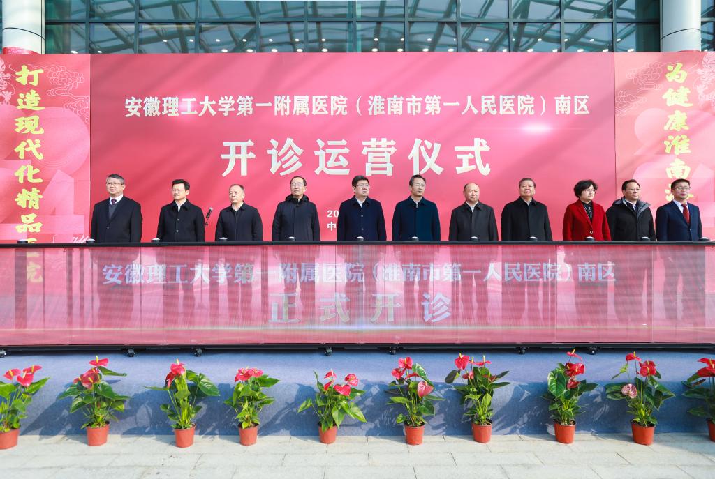 2月26日上午,安徽理工大学第一附属医院(淮南市第一人民医院)南区开诊运营仪式隆重举行。校党委书记郭永存宣布医院正式全面开诊运营,校党委副书记、校长袁亮院士致辞。淮南市委书记任泽锋,淮南市委副书记、市长张志强,省医保局党组成员、副局长徐翔东,省委教育工委、省教育厅二级巡视员郑德新,淮南市委常委、市委秘书长、市委政法委书记文见宝,副市长陆晞,省卫健委医政医管处处长马玉龙,校党委常委、副校长鲁超,淮南市政府秘书长戴宜斌,一附院党委副书记、执行院长刘新矿等出席仪式。鲁超主持开诊运营仪式。