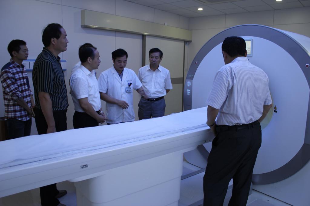 随后郭永存一行在十院有关领导陪同下先后参观了科教楼、学生临床仿真模拟实训中心、中心实验室、现代化信息中心、心血管交叉手术中心和核医学中心等。每到一处院方陪同领导都向郭永存一行详细介绍了参观科室的发展情况、特色与成就,并就有关问题进行了深入讨论。