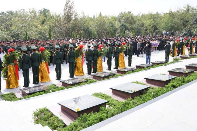 上午10时,市长王宏向烈士墓行鞠躬礼后,宣布公祭仪式开始。礼兵就位后,全体公祭人员齐声高唱中华人民共和国国歌。国歌唱毕,向烈士们肃立默哀3分钟,以表达对为了祖国和人民正义事业而英勇献身的烈士们的沉痛哀思。48名少先队员献唱中国少年先锋队队歌《我们是共产主义接班人》,并向烈士们敬献了花束。18名礼兵抬着花篮,缓缓迈上台阶,走到烈士墓前,向英烈敬献花篮。随后,市委书记沈强缓步走到烈士墓前,向烈士墓行三鞠躬礼,仔细整理花篮上的挽联。最后,全体公祭人员一同瞻仰了烈士墓。