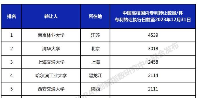 据悉,本榜单根据中国高校在在国家知识产权局登记生效的专利申请权和专利权转让数量(不含港澳台)进行统计排名,数据范围包括中国发明专利、中国实用新型专利、中国外观设计专利。该榜单旨在通过对中国高校专利转让实力的分析,进一步了解中国高校的技术创新度和知识产权管理能力。