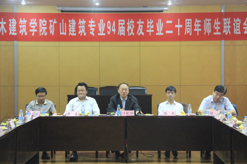 10月4日上午,土木建筑学院矿山建筑专业94届校友毕业20周年师生联谊会在校本部图书馆西侧会议室举行。我校副校长叶醒狮应邀出席会议并讲话,校党政办副主任李梁、土木建筑学院党委书记盛真、院长徐颖等学院党政领导、原带班辅导员、部分专业教师等分别出席了联谊会。