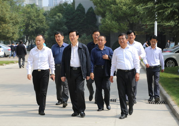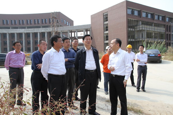 颜事龙、郭永存亲切会见了濮洪九一行,并向其汇报了学校近年来的发展建设情况和各项工作进展。濮洪九对学校发展非常关心,轻车简从到新校区实地了解工程建设情况。在新校区核心区广场,郭永存校长就新校区整体布局、建设规划、工程当前进度等情况作了详细介绍。濮洪九边听边问,仔细了解单体建筑布局、工程进度、搬迁计划等,他衷心祝愿新校区早日建成,为学校加快发展、建成特色鲜明的高水平教学研究型大学奠定坚实基础。