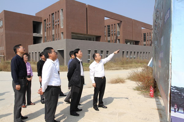 校党政办公室主任张海军、新校区指挥部洪江如、姚传勤、秦怀宏,以及代建单位赵向群、孙玉和施工单位负责人等陪同调研。
