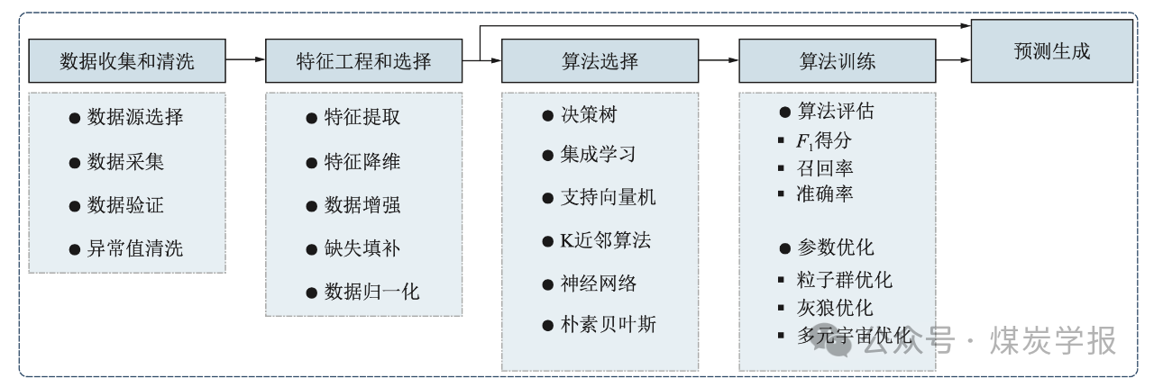 因此, 对机器学习在煤与瓦斯突出预测中的研究进行了全面的综述,分析其在突出预测中面临的难点并展望其发展方向。首先,简述煤与瓦斯突出假说、发生机理与预测指标选择的研究现状;介绍机 器学习在煤与瓦斯突出预测领域的主要研究进展,包括支持向量机(Support Vector Machines, SVM)、人工神经网络(Artificial Neural Network, ANN)、极限学习机(Extreme Learning Machines, ELM)和集成学习(Ensemble Learning, EL)等算法的应用,以及特征选择和缺失数据填补在数据处 理等方面的创新,同时也指出了目前基于机器学习的突出预测研究面临的挑战及存在的问题,例如事故与非事故样本的不平衡、数据的指标缺失和机器学习中的小样本等;最后,展望了基于机器学习的煤与瓦斯突出预测的未来发展方向,包括改进算法性能、优化特征工程和增加样本量等。 随着计算机性能的提升,有望开发出更为复杂、精准的模型,以提高对突出事故的准确预测能力。