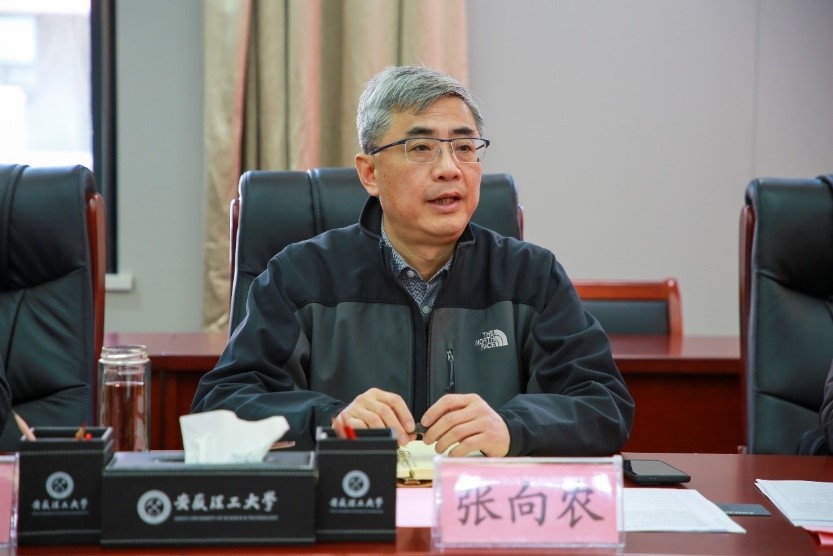 袁亮对张向农一行来校调研交流表示热烈欢迎。他从高水平科研平台建设、高端人才引进与培育、科研创新与成果产出等方面介绍了学校近年来取得的成绩。他指出学校聚焦煤矿瓦斯治理这一难题,深入开展矿山安全基础理论、共性技术及其装备研究,扎实推进安全科学与工程学科“高峰学科”建设,在国家矿山安全监察局和安徽局的大力支持下,获批建设煤矿瓦斯治理国家矿山局重点实验室。他强调,实验室将按照国家矿山安全监察局的要求,高质量完成实验室建设项目,制定完善的实验室管理制度,保障采购的仪器设备及时到位并高质量安全运行,为我校在瓦斯治理方面的科技攻关提供有力支撑。