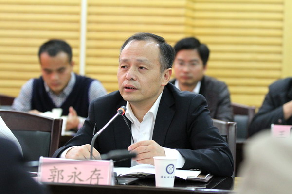 郭永存在致辞中首先对安徽理工大学与潘集区人民政府签订校地合作仪式表示祝贺,对出席协议签订仪式的各位来宾表示欢迎,并对为推动校地合作协议签署以及长期支持学校发展的各位领导表示感谢;向来宾简要介绍了学校在人才培养、科技创新、师资队伍以及学科建设等方面的情况。他指出潘集区是一个资源、能源以及农业大区,具有较好发展基础和巨大发展潜力,校地合作协议的签订,将为双方搭建新的合作平台,并将有效促进校地共同发展、实现合作共赢的新局面。他在致辞中还希望首批派驻潘集区的5名科技特派员不要辜负重托,尽快架起学校与地方以及企业之间的桥梁,为校地合作与发展贡献自己的智慧和力量。