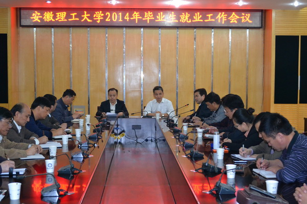 王洪回顾2014届毕业生工作时指出,2013年7月以来,学校党政高度重视,相关部门、各学院共同努力,创新方式,狠抓落实,有力促进了就业工作的顺利开展,主要做了以下几项工作:市场建设稳步推进,就业服务不断优化,就业指导全面加强,创业教育深入开展,毕业生文明离校。在部署2015届毕业生就业工作时,王洪强调,面对复杂严峻的就业形势,全校上下要认真贯彻落实党中央、国务院和安徽省的部署,早谋划,早动员,早动手,以钉钉子的精神和踏石留印、抓铁有痕的作风,突出重点,精准发力,整体推进。要在落实“一把手”工程、拓展就业市场、促进基层就业、优化指导服务、推进大学生创业教育、提高就业竞争力、就业信息公开、安全管理和就业宣传等8个方面狠下功夫,切实做好2015届毕业生就业工作,促进2015届毕业生充分就业,做到就业率水平不降低、就业质量有提高、创业人数有增长,完成2015届毕业生就业工作目标任务。