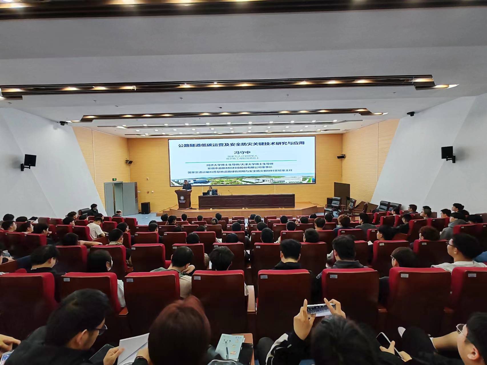 当天下午,冯守中在采动国家重点实验室一楼报告厅为学校师生作了题为《公路隧道低碳运营及安全防灾关键技术研究与应用》的学术报告。报告通过对公路隧道运营中常见工程问题调查分析,剖析了现行规范标准的不足,通过照明、消防等系统性试验,提出了多维光环境照明与高效消防无次生灾害救援理论和新技术、新方法。研究成果显著提升了隧道运营安全和低碳环保水平,该成果在我国公路隧道广泛应用,形成重大示范引领作用。冯守中的精彩报告给与会师生带来了一场知识盛宴。