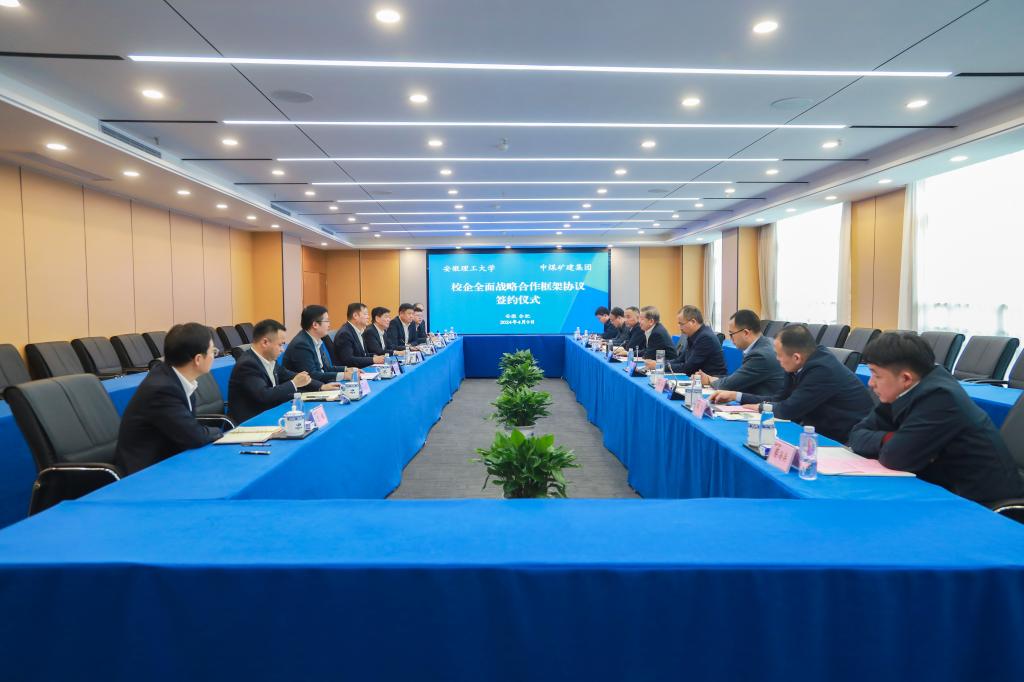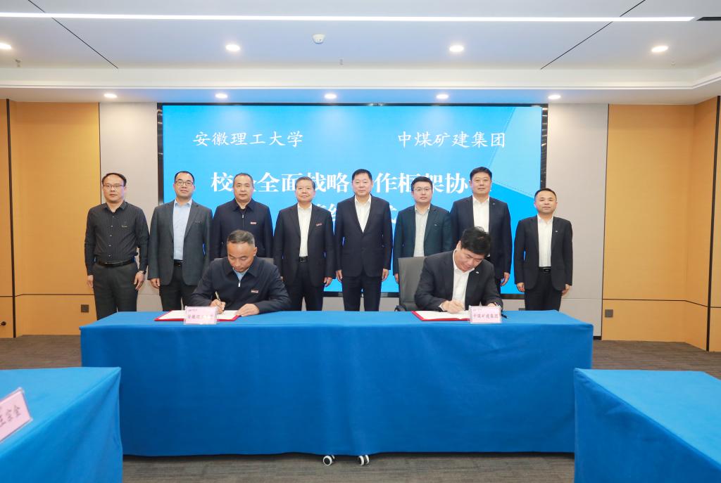 4月9日下午,学校与中煤矿山建设集团在合肥签署全面战略合作框架协议。校党委副书记、校长袁亮院士出席签约仪式并致辞。中煤矿建党委书记、董事长孙学军主持签约仪式并致辞。校党委常委、副校长王先江、张平松,中煤矿建党委副书记、工会主席、职工董事管万忠出席会议。