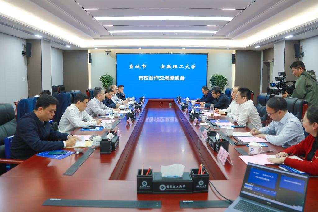 何淳宽对学校深厚的历史底蕴、鲜明的办学特色、强劲的发展动能表示由衷钦佩。他介绍了宣城近年来聚力打造动能强劲的产业体系、构建活力迸发的创新平台、营造近悦远来的服务生态,迭代升级“宣十条”、“敬亭英才”等政策,吸引更多人才成为宣城城市发展的最佳“合伙人”。他指出,安徽理工大学人才荟萃、智力密集、创新活跃,宣城是历史文化名城,正聚力打造创新发展高地,双方开展战略合作可谓是“名城牵手名校”,彼此相互赋能,发展空间广阔。他期待双方构建常态化交流沟通机制,以人才为牵引,以项目为依托,以创新为导向,重点在大学生就业创业基地建设、人才联合培养、项目“揭榜挂帅”、企业科技副总聘用、干部人才挂职交流等方面开展务实合作,产出实际成果,努力打造相互成就的合作典范。
