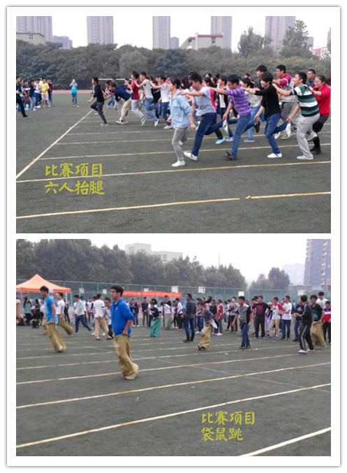 本届趣味运动会设计了简单有趣的背夹气球,紧张刺激的六人抬腿,配合默契的三人四足,速度与激情并存的袋鼠跳等。在三人四足的比赛中,两位男同学最初很想通过加快脚步赢得胜利,但发现队中的女同学会有危险,且效果不理想,他们经过商量讨论,由一名队友喊:“一左、二左、三右、记得眼睛不要往地上看……对,慢慢来……”最终,他们通过默契配合第一个到达了终点。比赛中,选手们的团结友爱、积极向上的精神感染了在场的许多同学。
