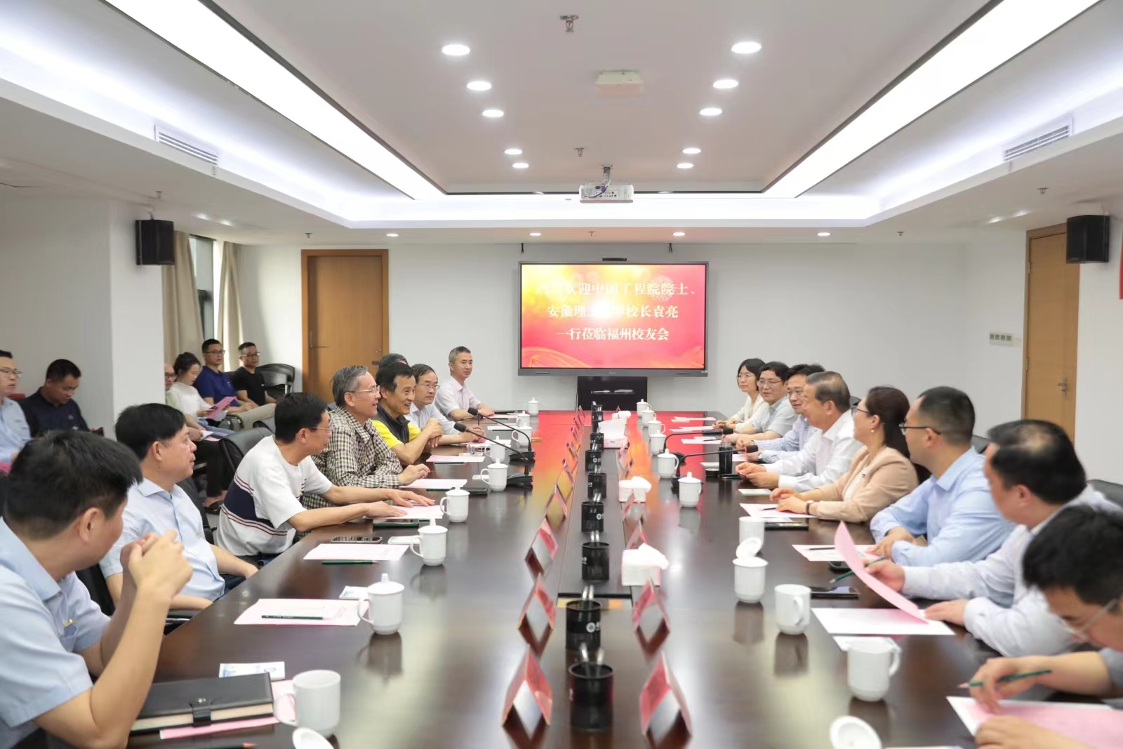 4月15日下午,校党委副书记、校长袁亮院士在福州出席第61届中国高等教育博览会期间走访调研了校友企业、看望慰问校友,并与部分在榕校友亲切座谈。校党委常委、副校长宫能平陪同调研。袁亮一行受到福州校友会会长、地下采煤专业78级校友章国升等热情接待。