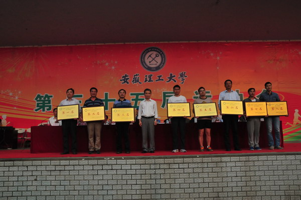 闭幕式上,总裁判长夏冬生宣布了比赛成绩。获得优秀运动员称号的分别是学男组机械工程学院王健,学女组经济与管理学院刘文婷同学;荣获学生组体育道德风尚奖的单位分别是能源学院、计算机学院、理学院、外国语学院、人文学院、测绘学院、化工学院、医学院;荣获教工组体育道德风尚奖的单位分别是测绘学院、计算机学院、土木学院、机关、理学院、外国语学院;荣获学生组团体总分前8名的单位分别是医学院、化工学院、机械学院、材料学院、经管学院、土木学院、电气学院、地环学院;荣获教工组团体总分前8名的单位分别是机关、理学院、外国语学院、电信学院、医学院、后勤集团、机械学院、材料学院;打破校记录的学生分别是机械学院王健在110米栏比赛中以15″58的成绩打破钱萌同学的16″33校记录,地环学院李欣芳在100米栏比赛中以18″03的成绩打破周春芳老师18″5的校记录。