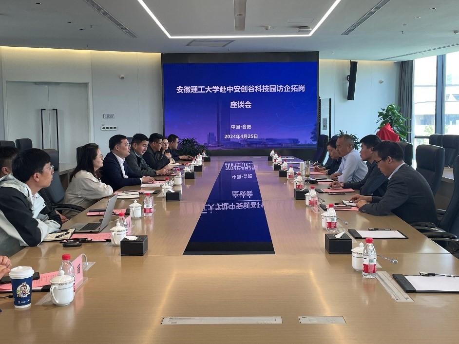 为进一步推动产学研合作,加强高校与企业之间的交流与合作,4月25日,校党委常委、副校长王先江前往位于合肥市的中安创谷进行走访交流,共同探讨人工智能领域的人才培养和未来合作机会。学校和中安创谷就共建“安徽理工大学生就业创业基地”举行了签约与授牌仪式。安徽中安创谷科技园有限公司副总经理蔡昊热情接待了王先江一行。人工智能学院主要负责人和相关工作人员随行。