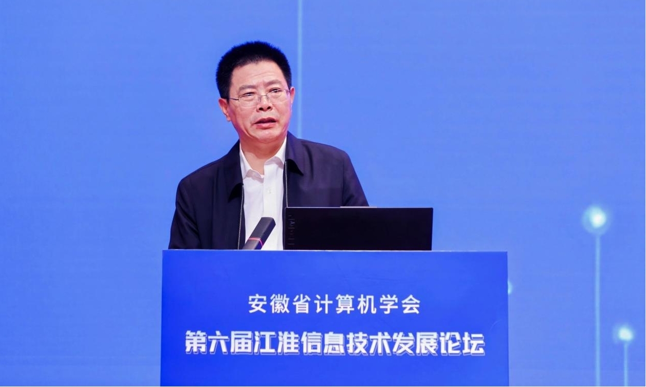 安徽省计算机学会理事长陈恩红教授在致辞中表示希望以此次论坛为契机,深入探讨“AI+”如何引领产业转型升级,推进“AI+”产业发展焕新向实,助力新质生产力的培育与发展。通过高层次的学术交流与战略合作,共同推动人工智能技术的创新与应用,为安徽省信息技术产业融合创新和经济社会高质量发展提供智力支持和科技支撑。