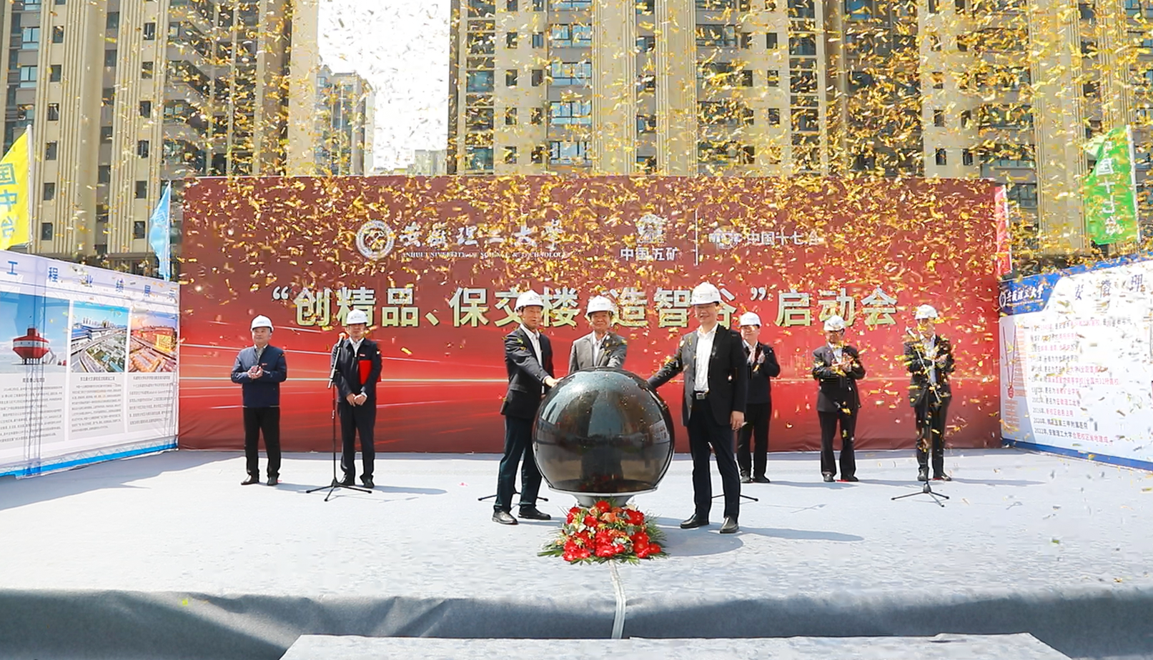 5月6日上午,“安理家园”二期项目“创精品 保交楼 造智谷”启动会在项目施工现场举行,项目建设进入攻坚会战冲刺阶段。校党委副书记、校长袁亮院士出席会议并致辞,淮南市委常委、统战部部长张劲松宣布项目攻坚会战正式启动,中国十七冶集团总工程师、副总经理伍昌国出席会议,校党委常委、副校长王先江主持启动会。