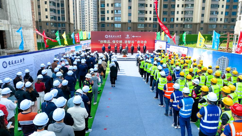 伍昌国代表中国十七冶集团公司致辞。他指出,作为央企,“保交楼”是集团公司义不容辞的政治责任,公司将秉持“保交付、保品质、保民生”的重要信念,严格管控交付标准,全力推动质量创优;围绕“安理智谷”创建,把创新驱动融入工程建设,向新提速、向效发力、向智转型、向绿而行,助力赋能淮南市和安徽理工大学加快培育新质生产力、推动高质量发展。他表示,公司将与学校紧密配合,攻坚克难、真抓实干,确保项目如期交付,向政府、学校、社会交出一份合格的品牌答卷、政治答卷、创新答卷。