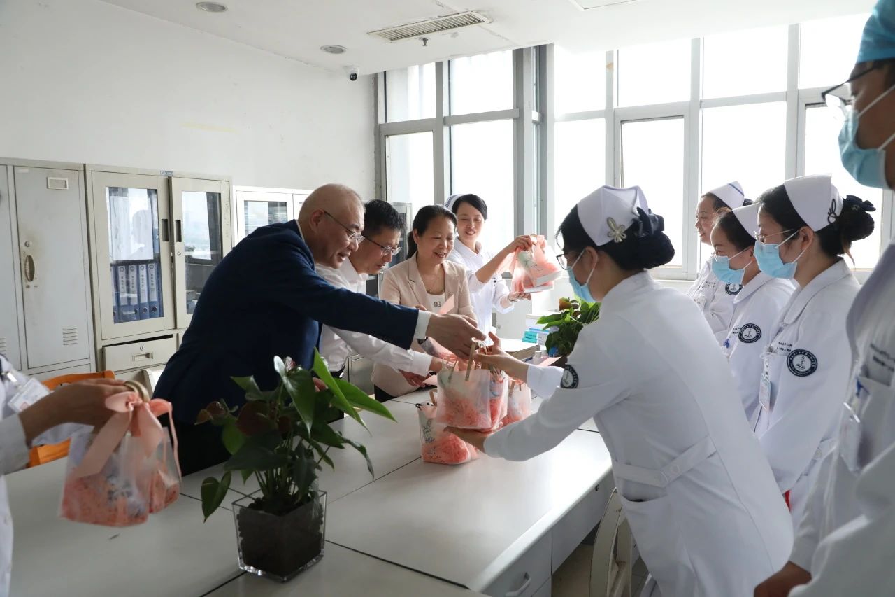 5月11日,刘新矿、刘群红、荣向霞等给奋斗在临床一线上兢兢业业、不辞劳苦、辛勤工作的护理人员送来了节日的慰问及祝福。