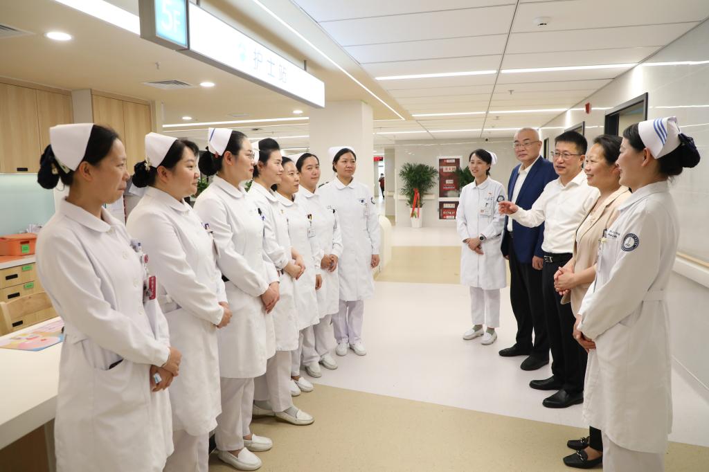 他们来到北区、南区、高新区分院(校医院)、西区、洞山社区卫生院,向致以节日的祝福和诚挚的问候,并向每一位护理人员送上护理部精心准备的节日礼物,仔细询问他们的工作情况,指出一附院的高质量发展离不开每一位护理人员的贡献,并指出,护理工作点多、线长、面广、繁杂琐碎,但是大家以实际行动践行了诺言,在平凡的岗位上,以严谨的工作态度、精湛的护理技术,为人民群众的身心健康提供了有力的保障。希望大家继续发扬南丁格尔精神,持续提高技术水平,优化护理服务,履行服务患者、奉献社会的职责,以“爱心、耐心、细心、责任心”对待每一位病人,做好护理工作。