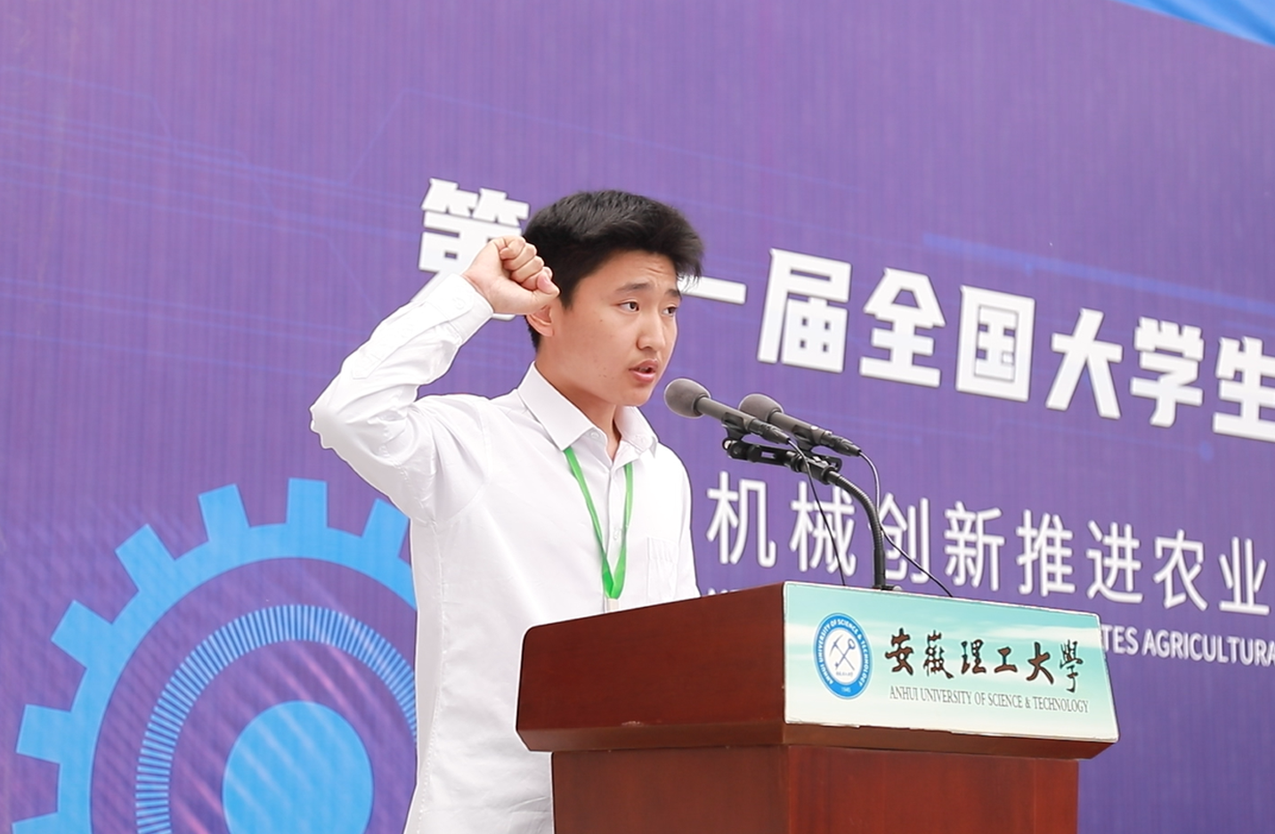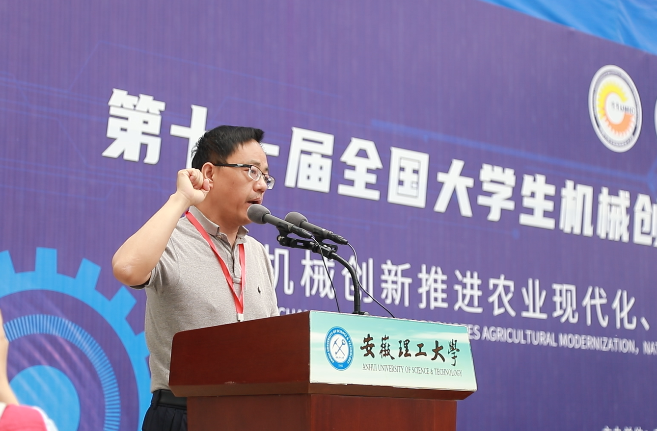 大赛秘书长、教育部高等学校机械基础教学指导委员会委员、合肥工业大学田杰教授代表竞赛组委会对竞赛工作提出要求。华中农业大学张国忠教授、安徽理工大学钱树同学分别代表裁判员、参赛队员宣誓。