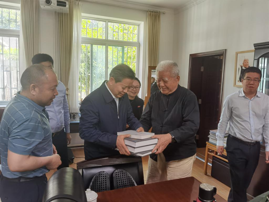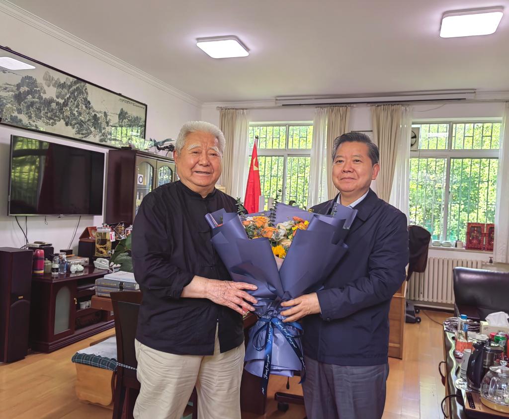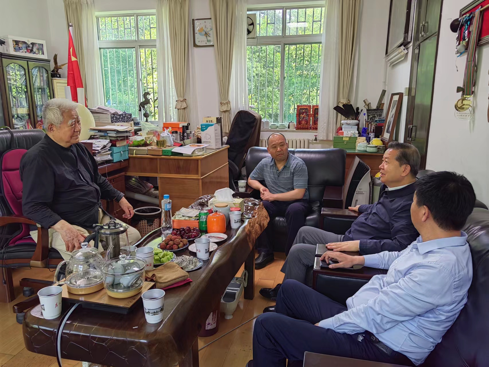 袁亮代表学校向程安东献上鲜花致以亲切问候,关切询问和了解他的家庭生活、身体健康状况,简要介绍了学校办学规模、科研创新、师资队伍、人才培养等方面发展情况,特别是学校近年来坚持以“双一流”创建为引领,推深做实“四个融入”发展战略,坚持走产教融合、科教融汇、理工医融通发展之路,推进特色发展,突出优势学科,强化中坚力量,打造“单项冠军”等创新举措和发展实效。袁亮就学校近期的发展情况与程安东进行了深入交流,认真听取了对学校建设发展的意见和建议,希望他保重身体,继续关心和关注安徽理工大学的发展建设,并诚挚邀请他适时回校,调研指导学校事业发展。