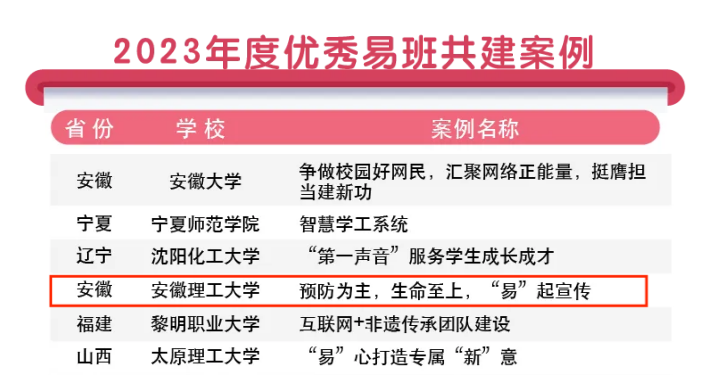 近日,在教育部易班发展中心公布的2023年度全国易班共建优秀名单中,我校安全科学与工程学院兰学强报送的易班案例《预防为主,生命至上,“易”起宣传》入选2023年度全国优秀易班共建案例,这是我校连续两年在该领域斩获殊荣;机电工程学院汪利萍老师凭借其在学院易班工作中的出色表现,荣获“2023年度全国优秀易班辅导员”称号,这是我校首次获得该项荣誉。